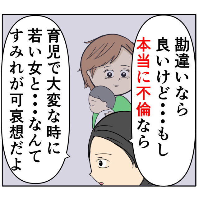 「勘違いなら良いけど・・・もし本当に不倫なら育児で大変な時に若い女と・・・なんてすみれが可哀想だよ。」