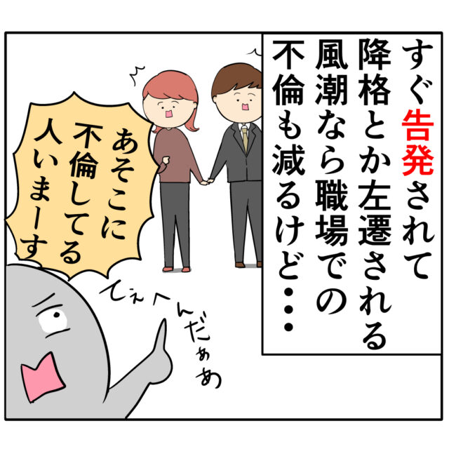 (実際社内不倫は見て見ぬふりされる事も多い。だから会社で不倫する人が居るんだと思う。)