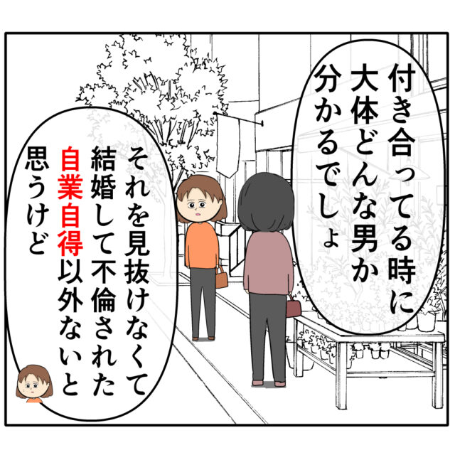 「付き合ってる時に大体どんな男か分かるでしょ。それを見抜けなくて結婚して不倫されたら自業自得以外ないと思うけど」