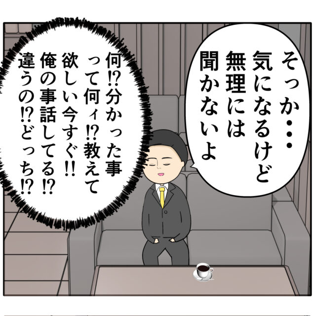 (何!?分かったことって何ィ?教えて欲しい今すぐ!!俺のこと話してる?違うの!?どっち!?)