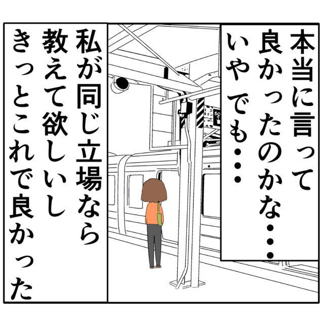 (本当に言って良かったのかな・・・いやでも・・・私が同じ立場なら教えて欲しいしきっとこれで良かった)