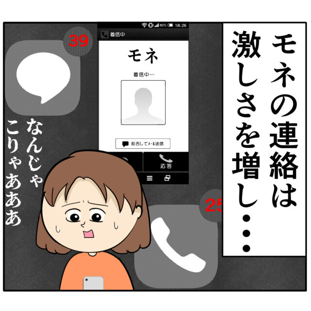 ご主人の不倫で情緒不安定になっているモネさんに寄り添ってあげたい気持ちはあっても・・・ここまでくると恐怖を感じてしまいますね・・・。