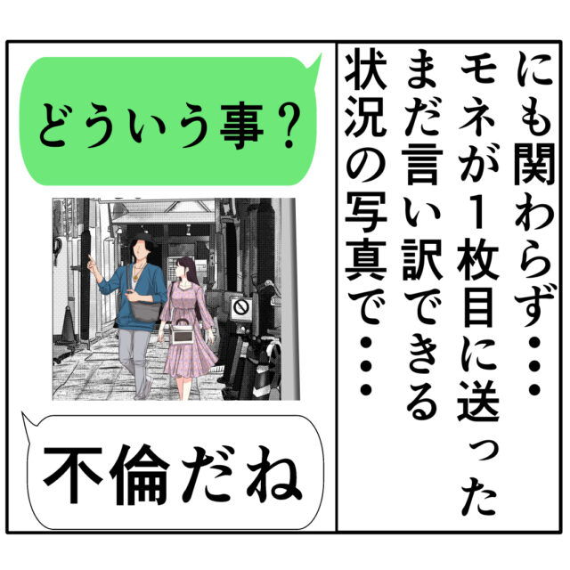 不倫が確実な写真ではなく、モネさんが1枚目に送った、まだ言い訳できるであろう状況の写真を見せて問い詰めただけで・・