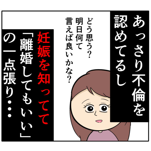 この状況であっさり不倫を認めるとは・・その上、妊娠を知っているにも関わらず、