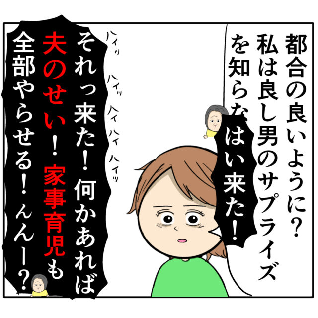 そう言われて「都合の良いように?私は良し男のサプライズを知らな・・」すみれさんがそう言うと「はい来た!」とまたしても言葉を遮るやば美さん、「ハイッ!ハイッ!それっ来た!何かあれば夫のせい!家事育児も全部やらせる!んんー?」やば美さんはあれやこれやと言い出してすみれさんに反撃しました。