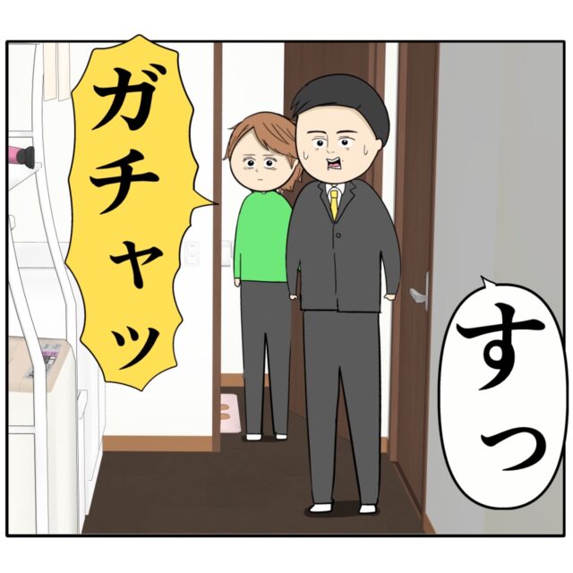 必死な良し男さんの背後でガチャッと開く扉。すみれさんは家にいました!