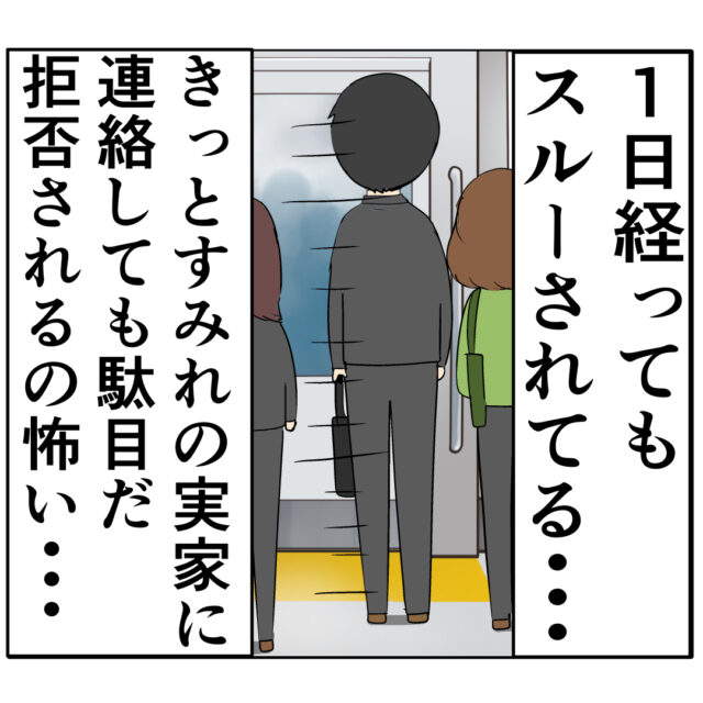 「実家に帰る」という置手紙を見てすぐにすみれさんに送ったメッセージは、1日経ってもスルーされています。良し男さんは、すみれさんの実家に連絡するのはダメだと思いました。拒否されるのが怖いのです。