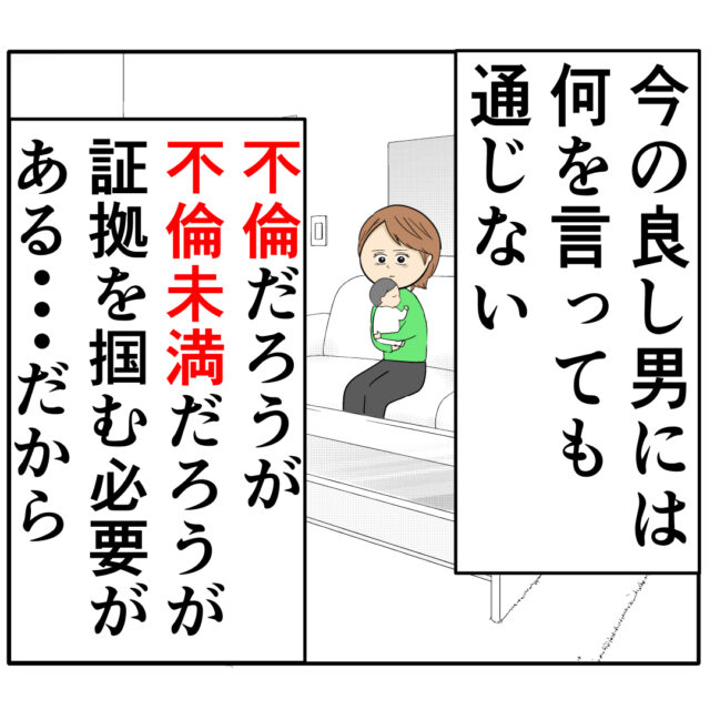 良し男さんには何を言っても通じないけれど、不倫だろうが不倫未満だろうが、証拠をつかむ必要があると思っているすみれさん。