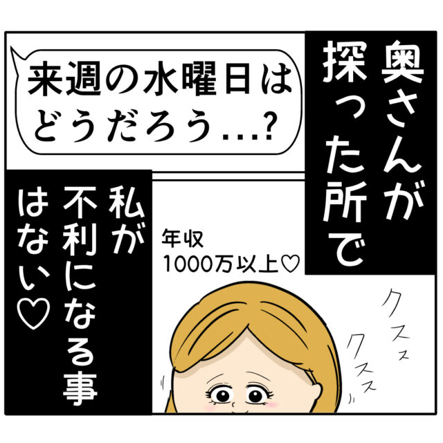 それでも、奥さんが探ったところで自分が不利になることは無いと確信するふり子さんの頭の中には、良し男さんというよりは「年収1,000万円以上」の文字しかありませんでした。