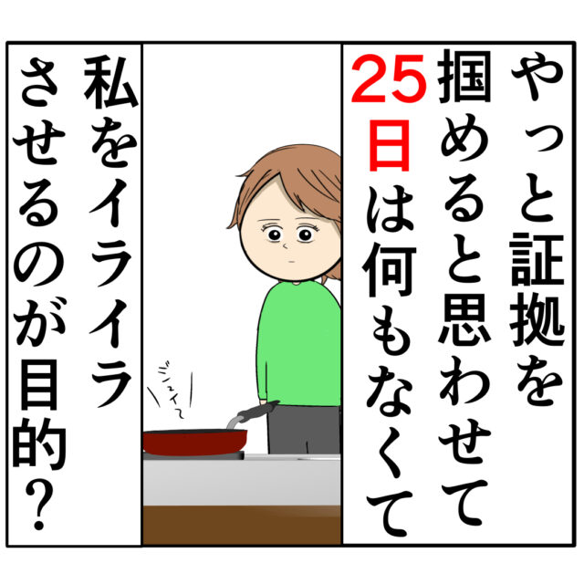 「やっと証拠を掴めると思わせて、25日は何もなくて私をイライラさせるのが目的?」