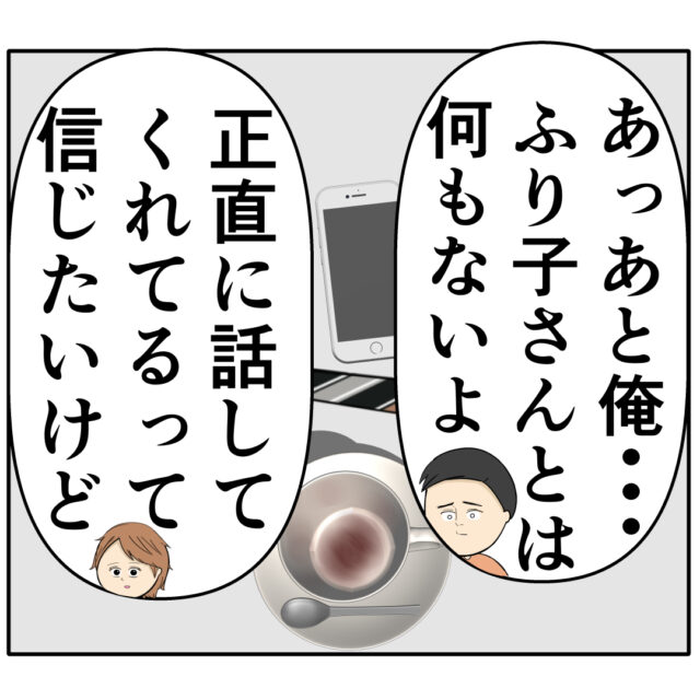 「あっあと俺・・・ふり子さんとは何もないよ」と良し男さんは伝えましたが、「正直に話してくれてるって信じたいけど」とすみれさんは言いました。
