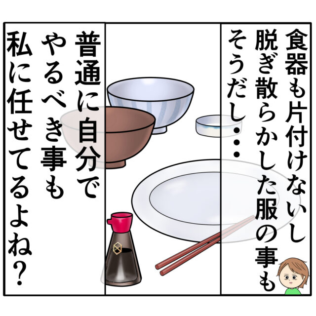 「食器も片づけないし脱ぎ散らかした服の事もそうだし・・・