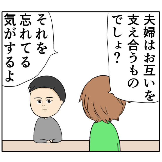 「夫婦はお互いを支え合うものでしょ?それを忘れてる気がするよ。」