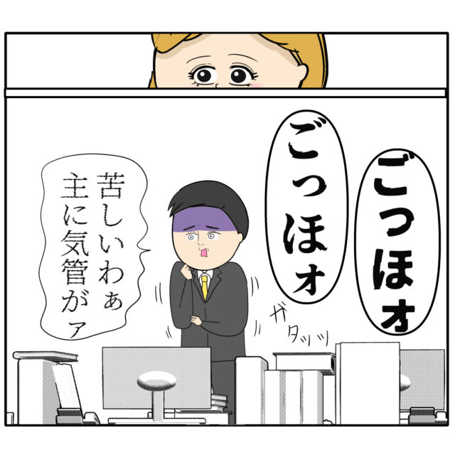 チラリと良し男さんの方を見ると、「ごっほォ。ごっほォ!苦しいわぁ・・主に気管がァ」と苦しそうな様子。