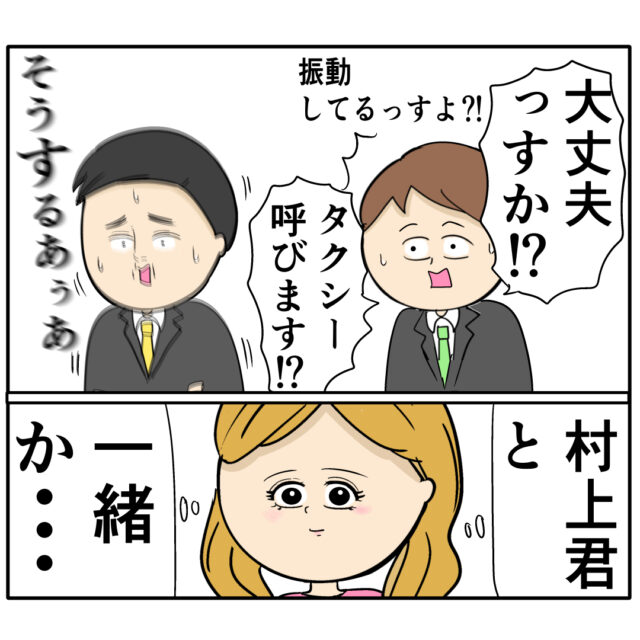 すると「大丈夫っすか!?タクシー呼びます!?」と良し男さんを心配する村上さんが隣にいるのを見て、「村上くんと一緒か・・」と心の中で呟くふり子さん。