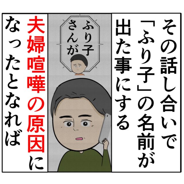 「その話し合いで『ふり子』の名前だ出たことにする。夫婦喧嘩の原因になったとなれば、と思案するすみれさん。