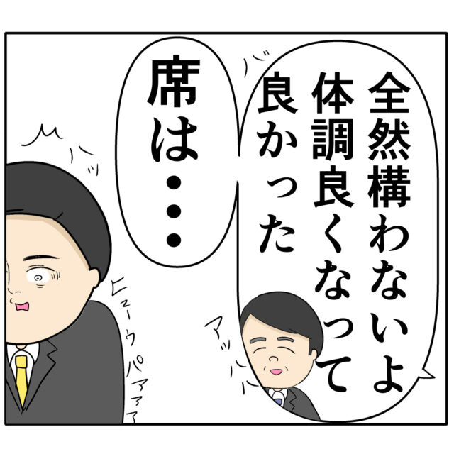「全然構わないよ。体調良くなって良かった。席は・・・」と言う部長の言葉にビクッとする良し男さん。