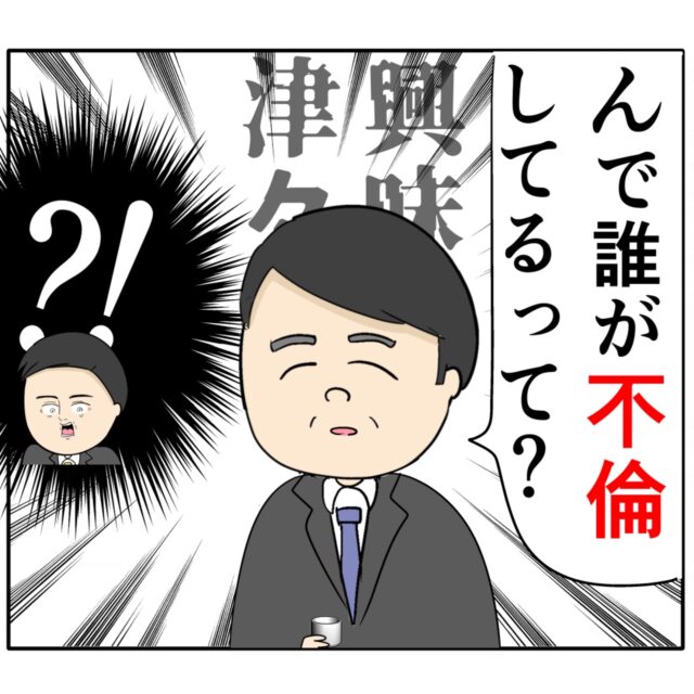 不倫の話題を逸らしたかった良し男さんですが、「んで誰が不倫してるって?」とまさかの部長も不倫の話題に興味津々。