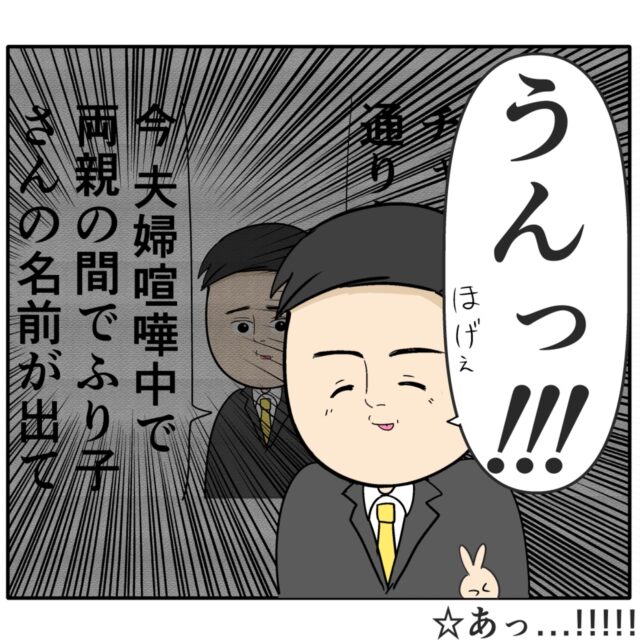 満面の笑みで「うんっ!!!」と答えた良し男さん。夫婦喧嘩中ということになっていた良し男さんですが、ふり子さんにかまをかけられつい本音を答えてしまいました。