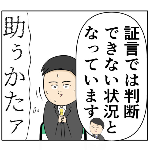 「証言では判断できない状況となっています」部長の言葉を聞いて「助かったァ・・」とホッとする良し男さん。
