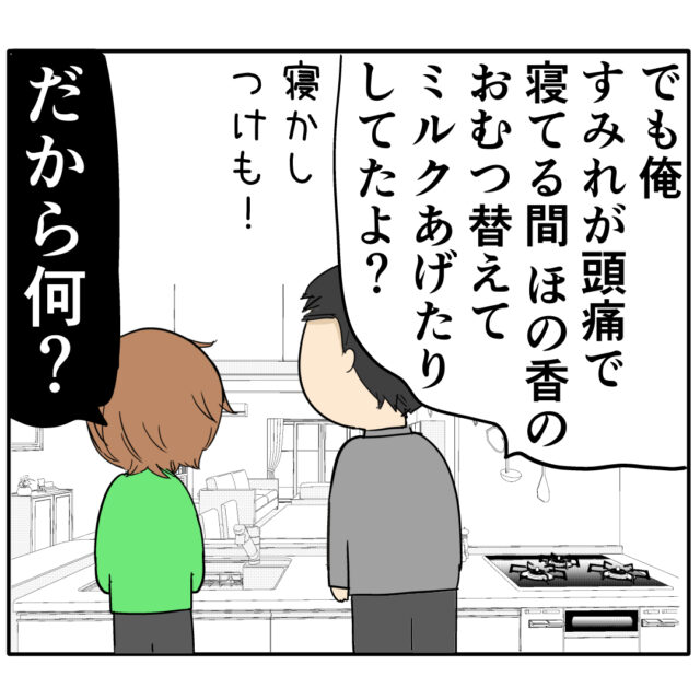 「でも俺、すみれが頭痛で寝てる間ほの香のおむつ替えてミルクあげたりしてたよ?寝かしつけも!」
