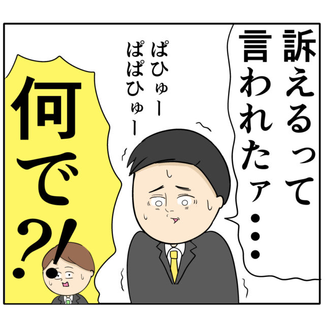 「訴えるって言われたァ・・・ぱひゅー・・」呼吸が荒くなる良し男さんに、「何で!?」と意味不明すぎて驚く村上さん。