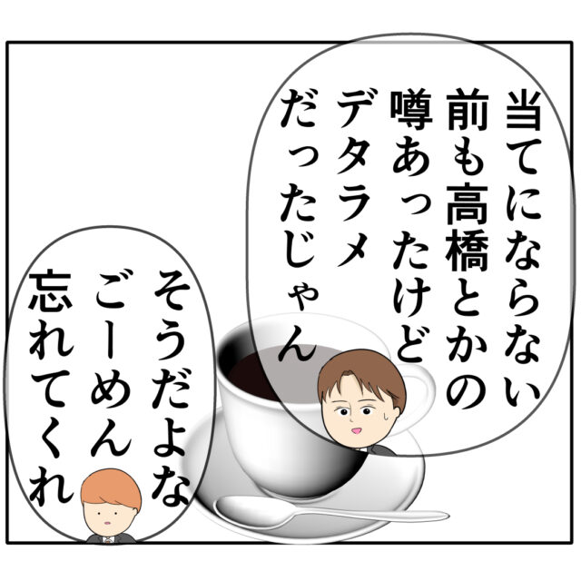 人のうわさは当てにならないと信じない、いや信じたくないは気さんに、噂を伝えた同僚も「そうだよな、ごめん忘れてくれ」と言ってその場は噂の話は終わりました。