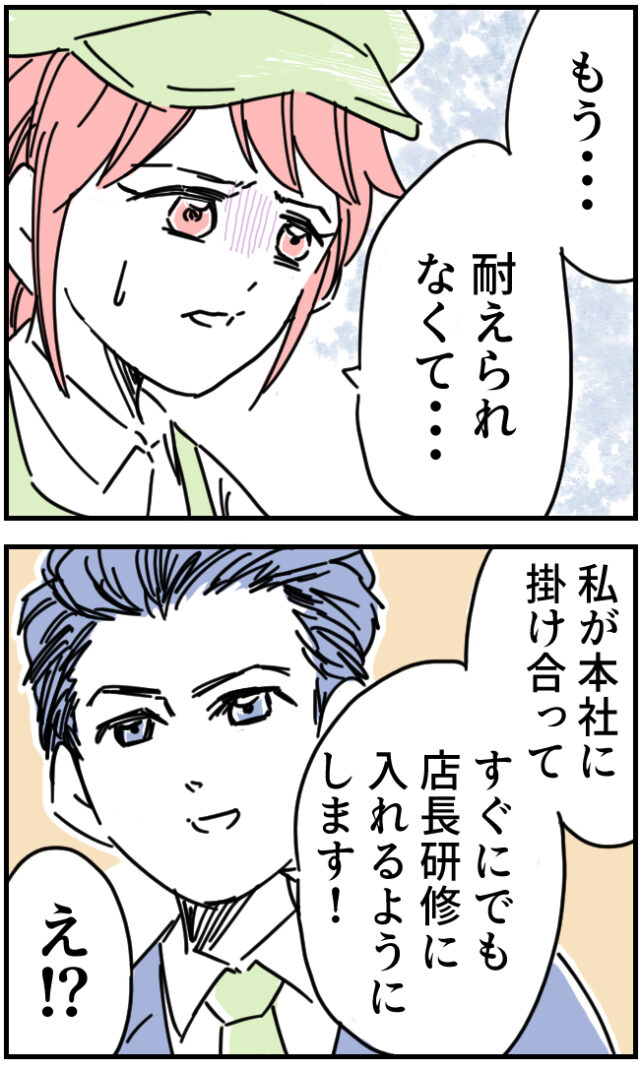 「大丈夫!私が本社に掛け合って、すぐにでも店長研修に入れるようにします!」