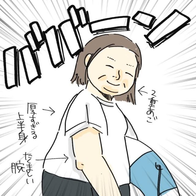 すると。ババーンと目に飛び込んできたのは、2重あご、厚すぎる上半身、たくましい腕をした私の姿。