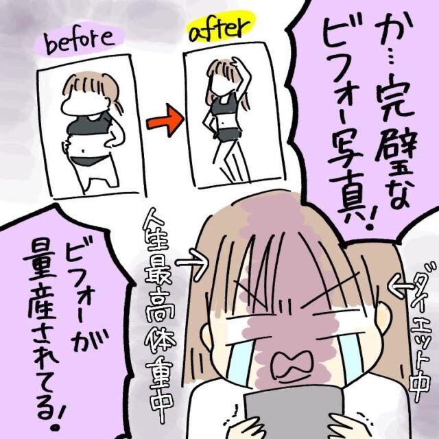 その姿は、まるでダイエットのビフォーアフターのビフォーで出てくるイメージ写真のよう。「か・・・完璧なビフォー写真!」「ビフォーが量産されてる!」どの写真を見てもビフォー写真のような私が写っていて大ショック!そう、今の私は人生最高体重中でダイエット中なのです。