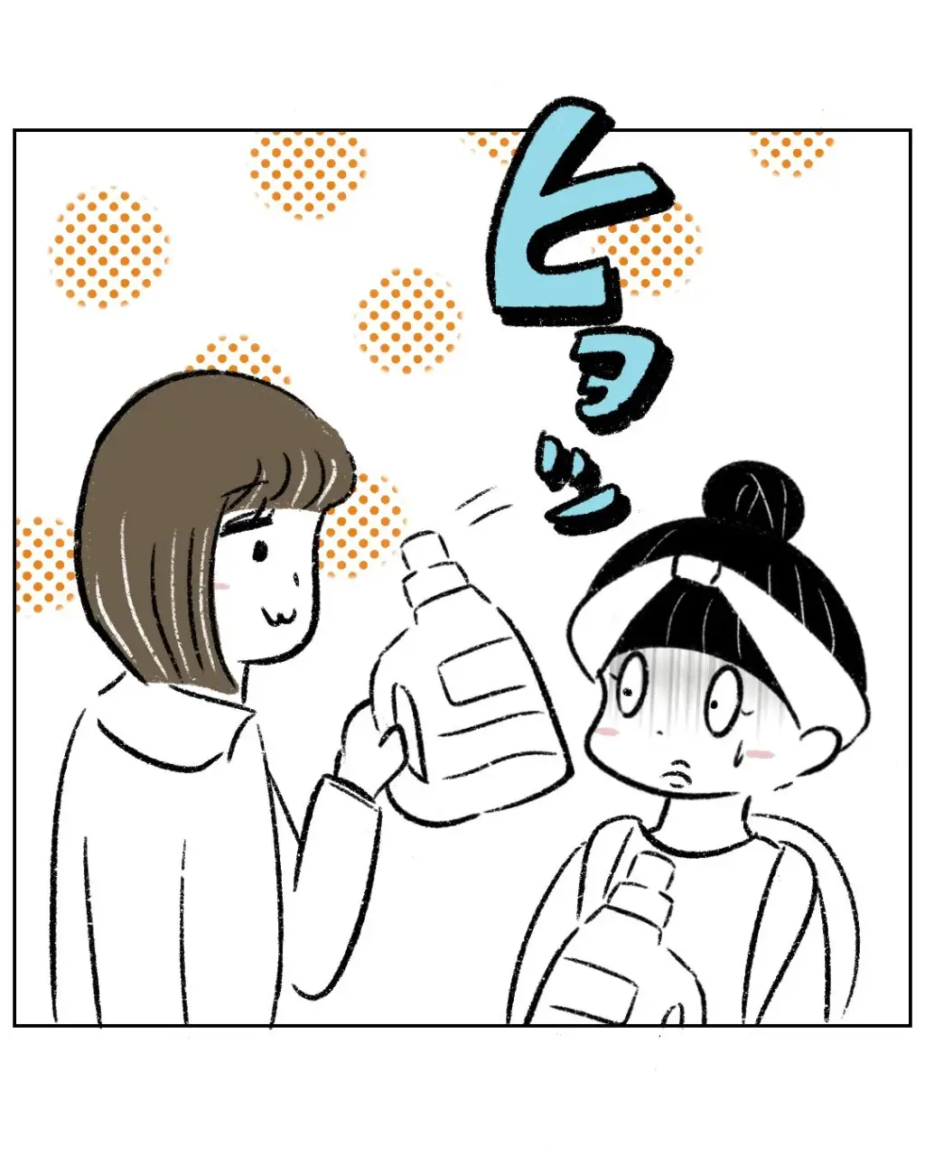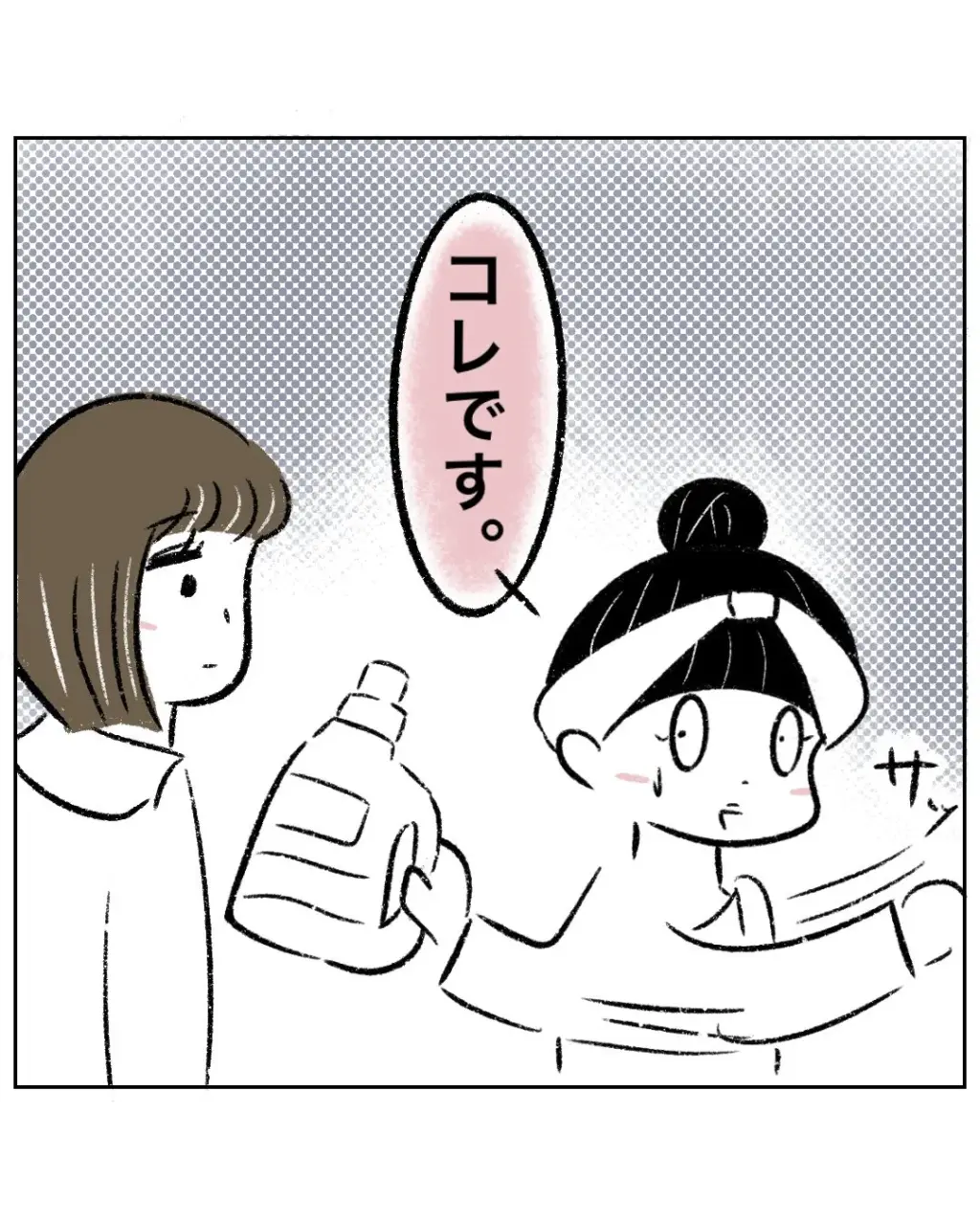 ゆかちゃんママは無言でまるさんと同じ洗剤を手に取りました。まるさんが困惑していると、