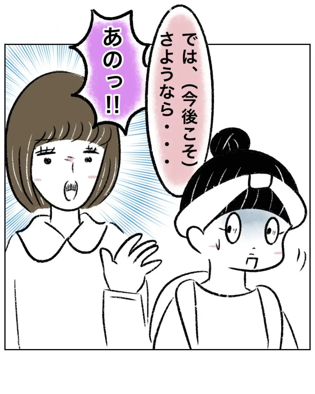 「では、(今度こそ)さようなら・・」と挨拶し帰ろうとしました。しかし、足早に立ち去ろうとするまるさんを「あのっ!!」とゆかちゃんママが大きな声で呼び止め、