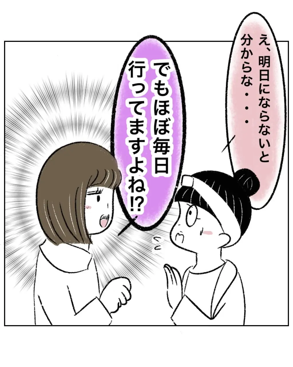 「え、明日にならないと分からな・・」と答えるまるさんに被せるように「でもほぼ毎日行ってますよね?」と前のめりで聞いてくるゆかちゃんママ。