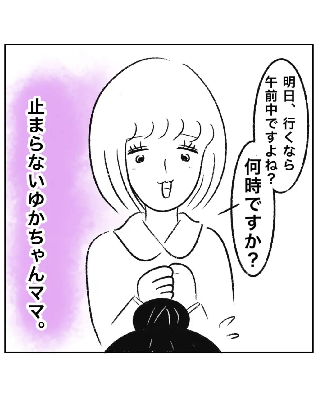 しかし、ゆかちゃんママは「私、明日の午前中に行きますねっ!!」と笑顔で宣言。
