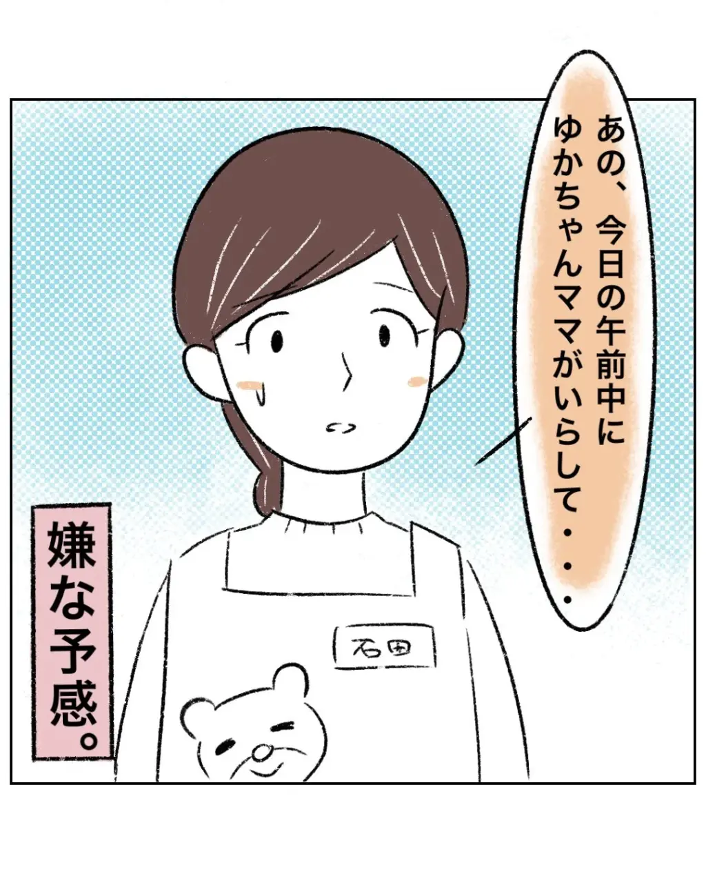 先生は「あの、今日の午前中にゆかちゃんママがいらして・・」と言いにくそうに話し始めるので、まるさんは嫌な予感がしました。
