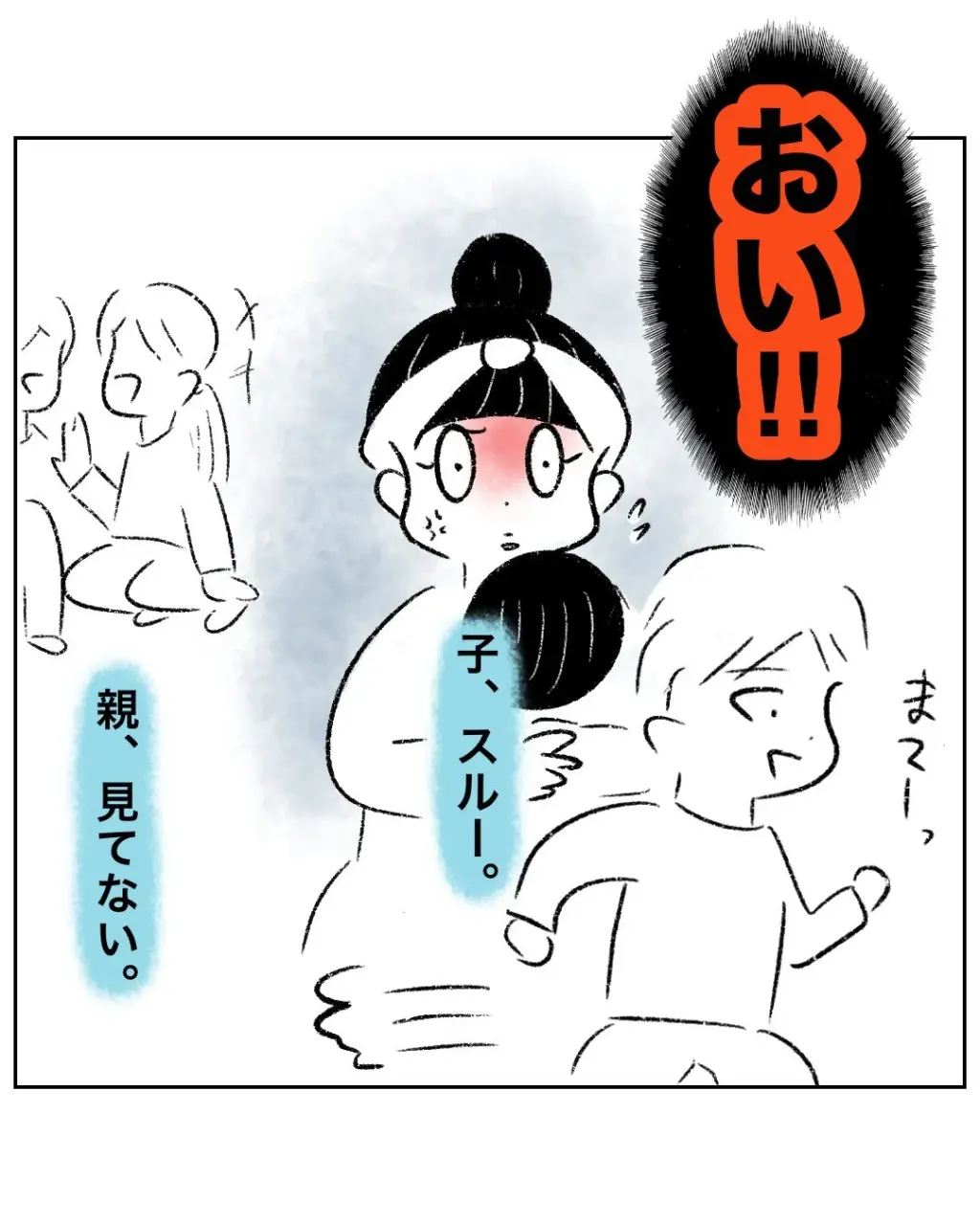 アキくんの手を踏んだ子は気付いているはずなのに泣いているアキくんに謝ることもなく、その子の親もおしゃべりに夢中で気付いてもおらず、まるさんは心の中で「おい!!」と苛立ちを覚えます。