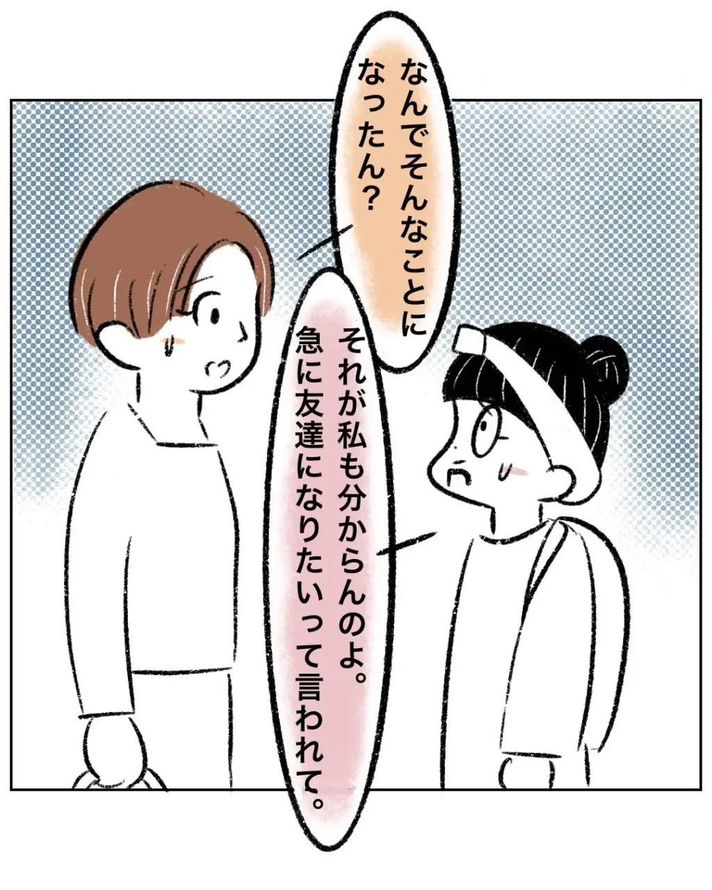 「なんでそんなことになったん?」とマキちゃんママに聞かれたまるさんは「それが私も分からんのよ。急に友達になりたいって言われて」とこれまでの経緯を話しました。