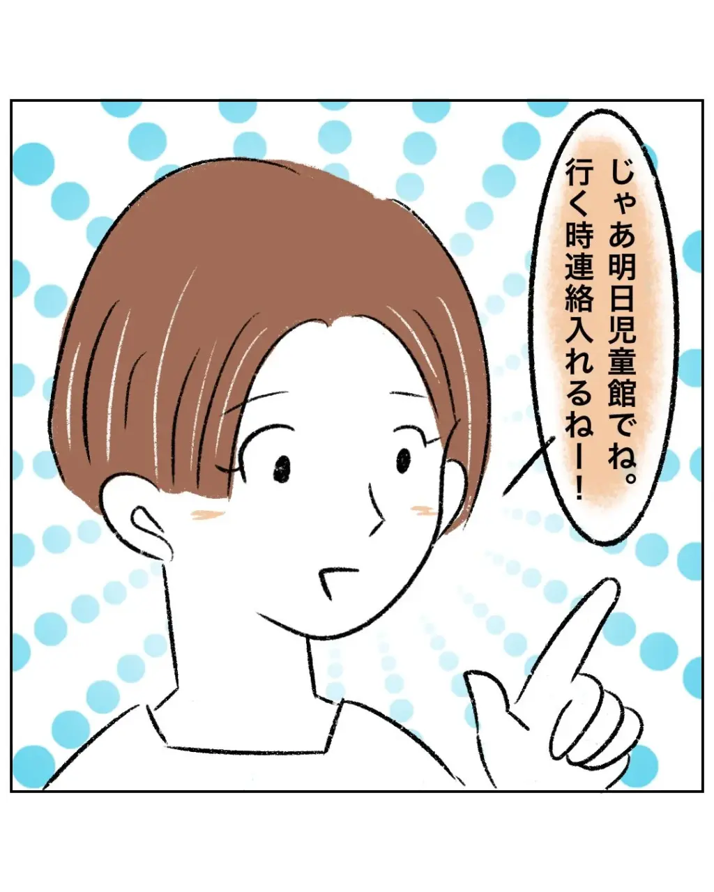 そして、「じゃあ明日児童館でね。行く時連絡入れるねー!」マキちゃんママはそう言うと、