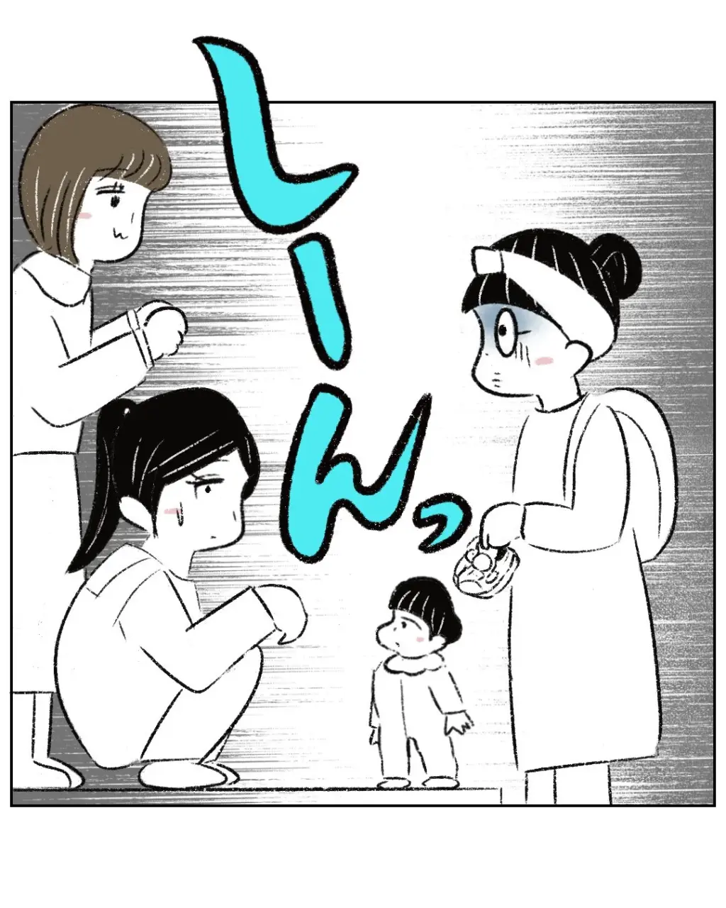 アキくんとまるさんが児童館に来た3日間、アキくんが履いていた靴を全て調べていたゆかちゃんママ。さらに、「昨日着ていたサロペット、四つ家ブランドの初期モデルですよね!あれ、レアだし高いですよねー?お金持ちだぁ」と言い出して「なに、この人・・」と怖くなったまるさんは、