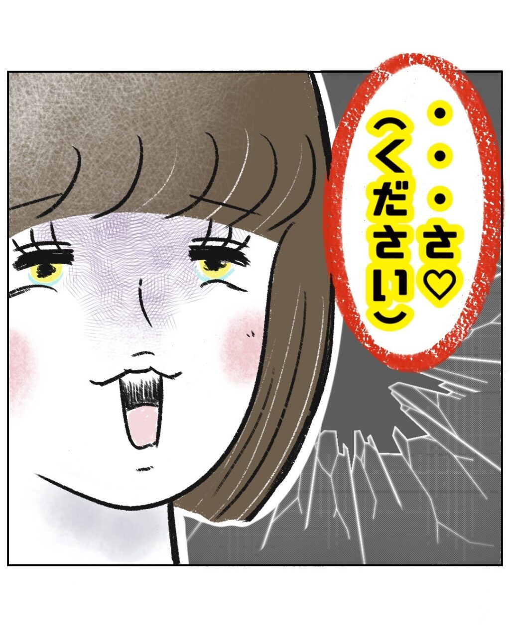 「・・さ。(くださいの意)」と不気味な笑顔で言いました。