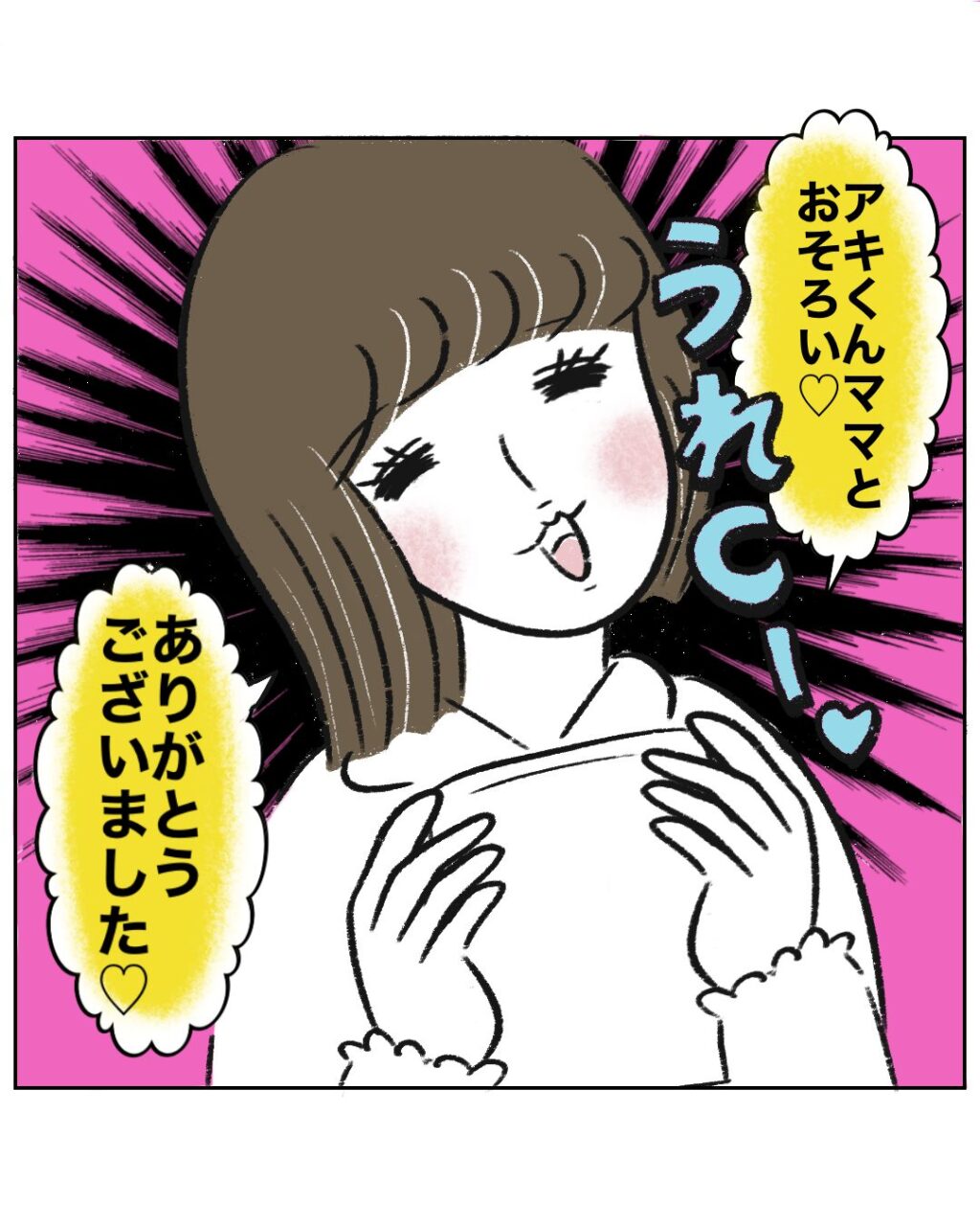「うれCーー!!アキくんママとおそろい!ありがとうございました!」と笑顔で言ったのでした。