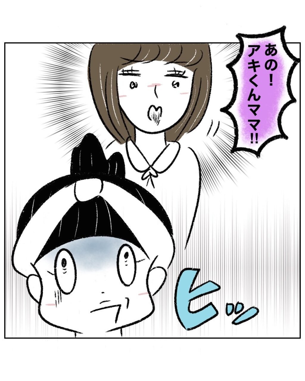 そして、「あの!アキくんママ!!」ゆかちゃんママに呼ばれ、まるさんはヒッと震え上がりました。