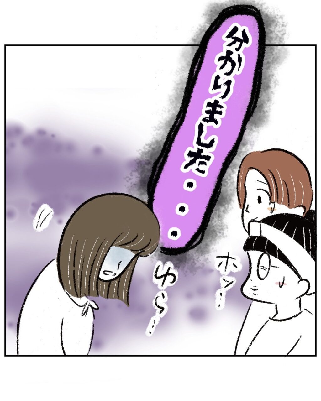 「わかりました・・」とうつむきながら言うゆかちゃんママが、