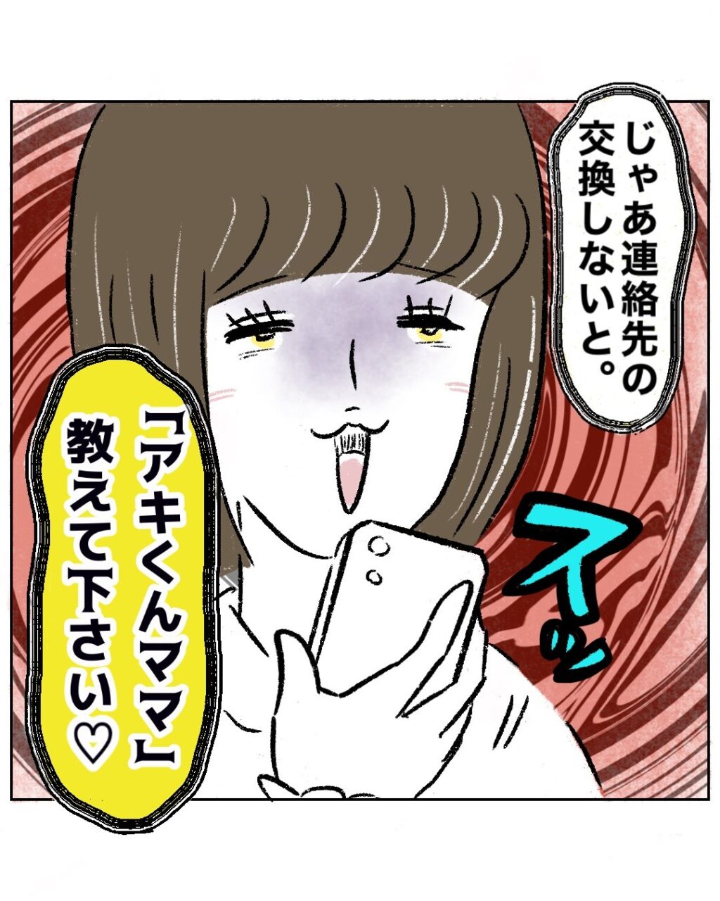 「じゃあ連絡先交換しないと。『アキくんママ』教えてください」不気味な笑みを浮かべながら、ゆかちゃんママはそう言ってスマホを取り出したのでした。
