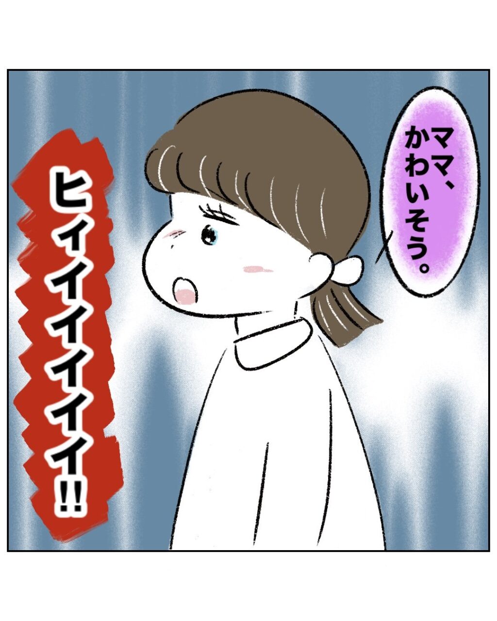 「ママかわいそう」とママの言葉を信じて同情するゆかちゃんを見て、まるさんは「ヒィイイイイイ!!」と心の中で叫びます。