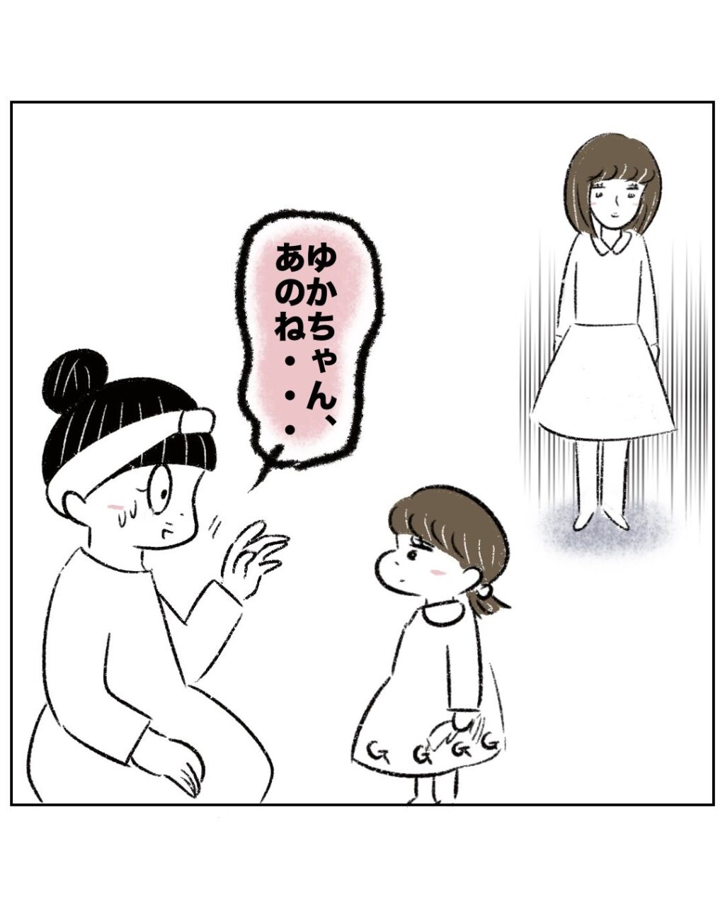 「ゆかちゃん、あのね・・」とまるさんがゆかちゃんに説明しようとすると、少し離れたところで見ていたゆかちゃんママが突然立ち上がり、