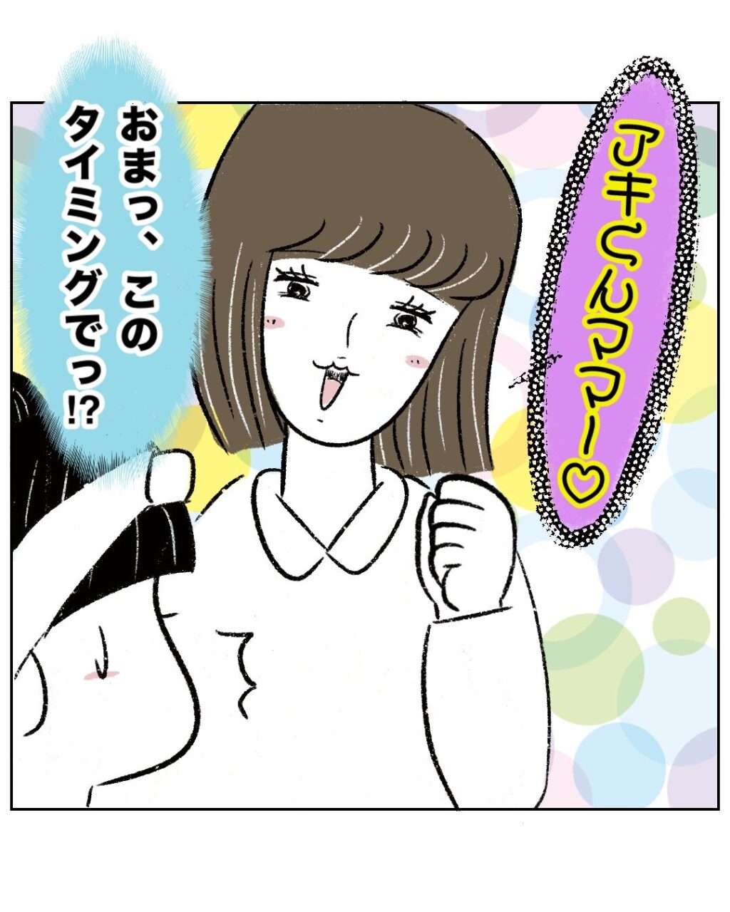 「アキくんママ~!」と猫なで声で話しかけてきました。まるさんがママをいじめていると勘違いしているゆかちゃんの前でわざと声をかけてきたゆかちゃんママに「おまっ、このタイミングでっ!?」と思いながらも、