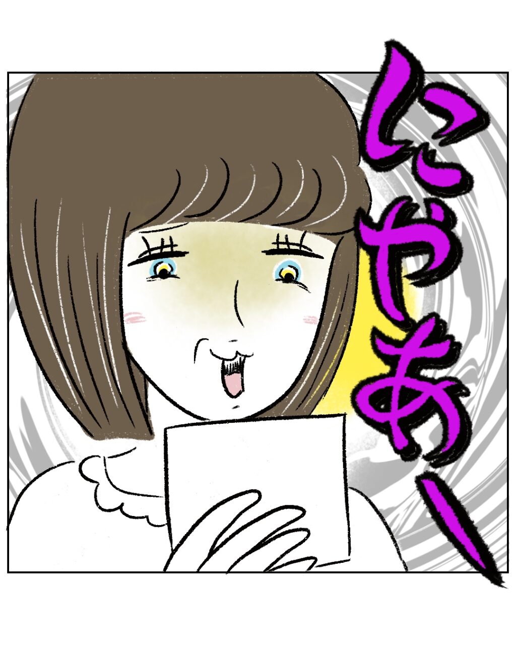 シールを手に取ったゆかちゃんママは、にやぁーっと不穏な笑みを浮かべます。
