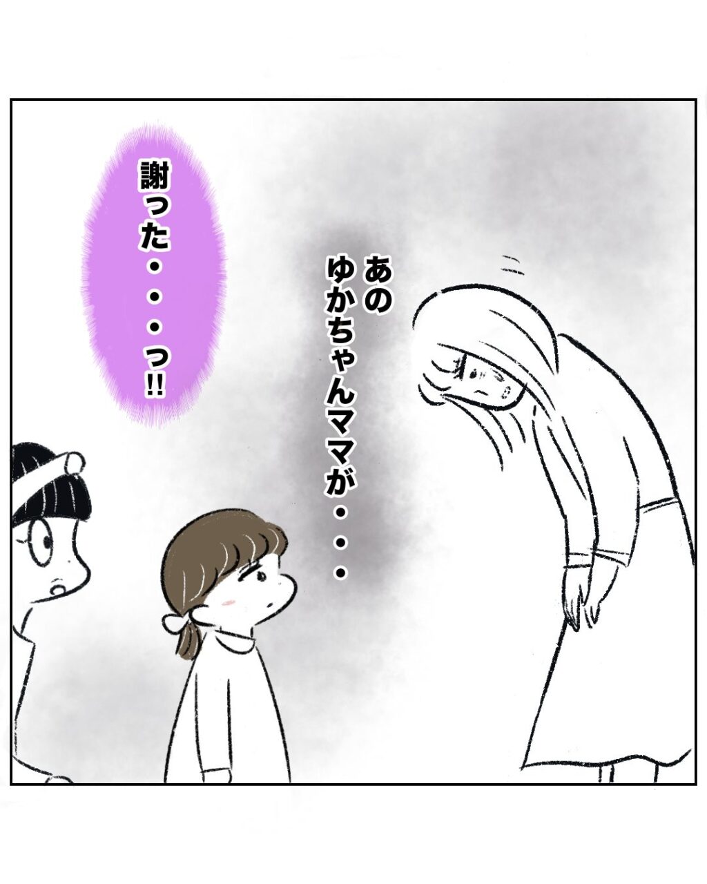 まるさんに執着したかと思うとマウントを取ったり、友達になれないと宣言したまるさんに友達の証と言ってバレッタを強引に渡そうとしたりを繰り返していたゆかちゃんママと口論になってしまったまるさん。ところが娘のゆかちゃんに正論で諭され、ついにゆかちゃんママがまるさんに謝りました。
