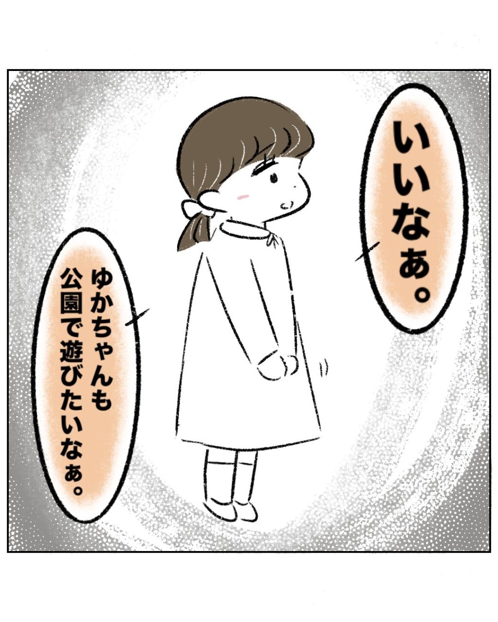 「いいなぁ。ゆかちゃんも公園で遊びたいなぁ」とポツリ。